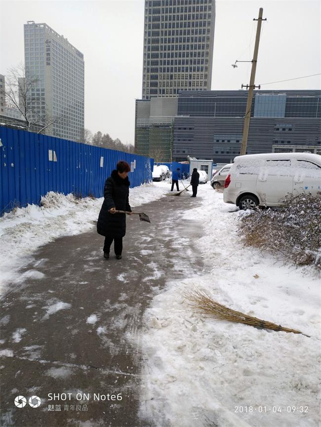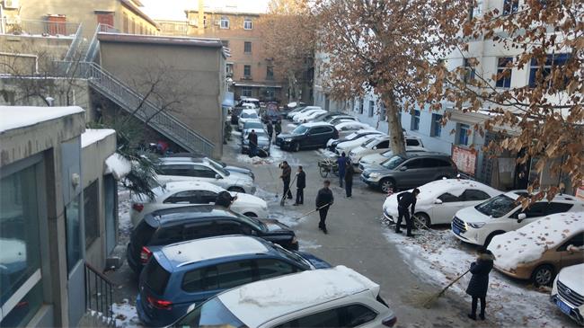 1月4日一大早,后勤保障部,兵分三路分別對南區(qū)家屬院、北區(qū)家屬和院建國路辦公區(qū)的積雪進行清掃,大家利用鐵鍬、掃帚等工具將積雪鏟走,清理出道路,在積雪較厚的地方撒除雪劑。在大家的帶動下我院退休職工李克銀、高賢峰、李君、婁季功,職工家屬李赟、賈愛榮等也紛紛加入掃雪隊伍。盡管天氣寒冷,但大家團結協(xié)作,干勁十足,經(jīng)過3個多小時的共同努力,家屬區(qū)路面上的積雪、碎冰已被清掃干凈,道路暢通無阻,來往職工家屬紛紛稱贊,并表示感謝。