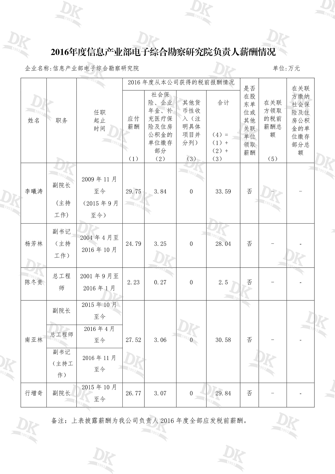 信息產(chǎn)業(yè)部電子綜合勘察研究院 2016年度、2017年度企業(yè)負(fù)責(zé)人薪酬 信息情況公示