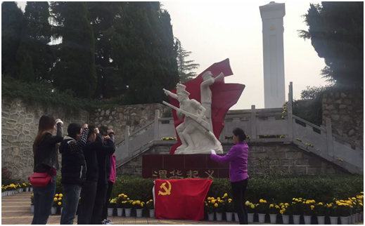 從陳列大廳出來,我們瞻仰了渭華起義革命烈士紀念碑。在渭華起義革命烈士紀念碑前,面對莊嚴的黨旗,支部書記吳東艷同志帶領(lǐng)大家重溫了入黨誓詞;支部宣傳委員張鵬同志進行了題為“新時代 新目標 新征程”的講黨課活動,帶領(lǐng)大家共同學習了十九大報告的新思想,使此次教育活動更加充實,更堅定了革命理想信念,更有意義。       最后,我們懷著無比崇敬的心情,參觀了起義指揮部舊址、起義領(lǐng)導(dǎo)人舊居、西北工農(nóng)革命軍軍委擴大會議遺址(兩顆古槐遺址),親身感受了先烈們?yōu)闋幦∶褡褰夥哦⒂聭?zhàn)斗的革命英雄氣概。