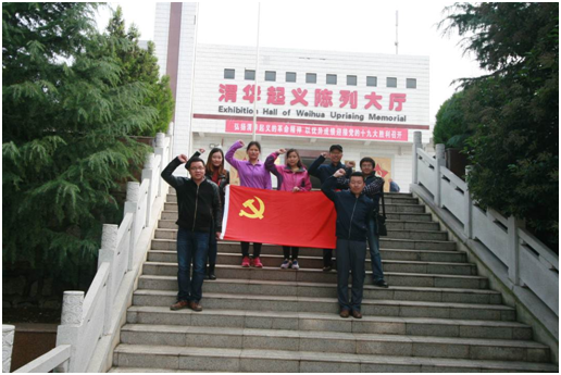 為扎實推進“兩學一做”學習教育常態(tài)化、制度化,充分發(fā)揮好“主題黨日”載體作用,加強黨員教育,提升黨員干部的黨性修養(yǎng)水平,增強基層黨組織的戰(zhàn)斗力和凝聚力。10月20日,機關(guān)一支部組織黨員赴渭南市華州區(qū)高塘鎮(zhèn)渭華起義紀念館,開展“緬懷革命先烈 高擎黨建旗幟”主題黨日活動,接受革命傳統(tǒng)和黨性教育,深切緬懷革命先烈的豐功偉績,體驗革命先輩艱苦卓絕的奮斗歷程。
